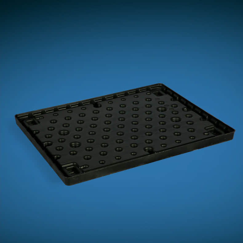 注塑成型适用于成型形状复杂、刚度要求高的托盘, 适用于生产批量大的托盘成型加工。但模具成本高, 投资大。飞边极少、制品后处理工作量很少。成型 周期短, 一般 一个周期约3分钟。制品尺寸精确,表 面质量好。